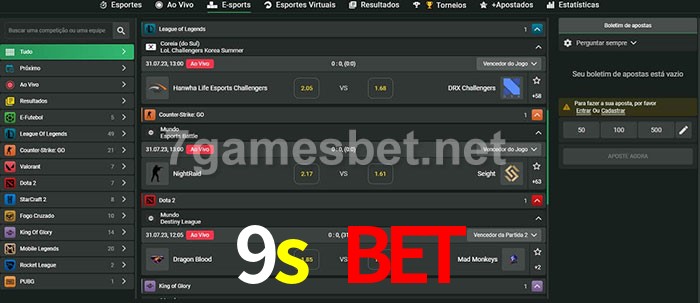 O 9s bet oferece uma grande seleção de opções de apostas em e-sports com probabilidades competitivas